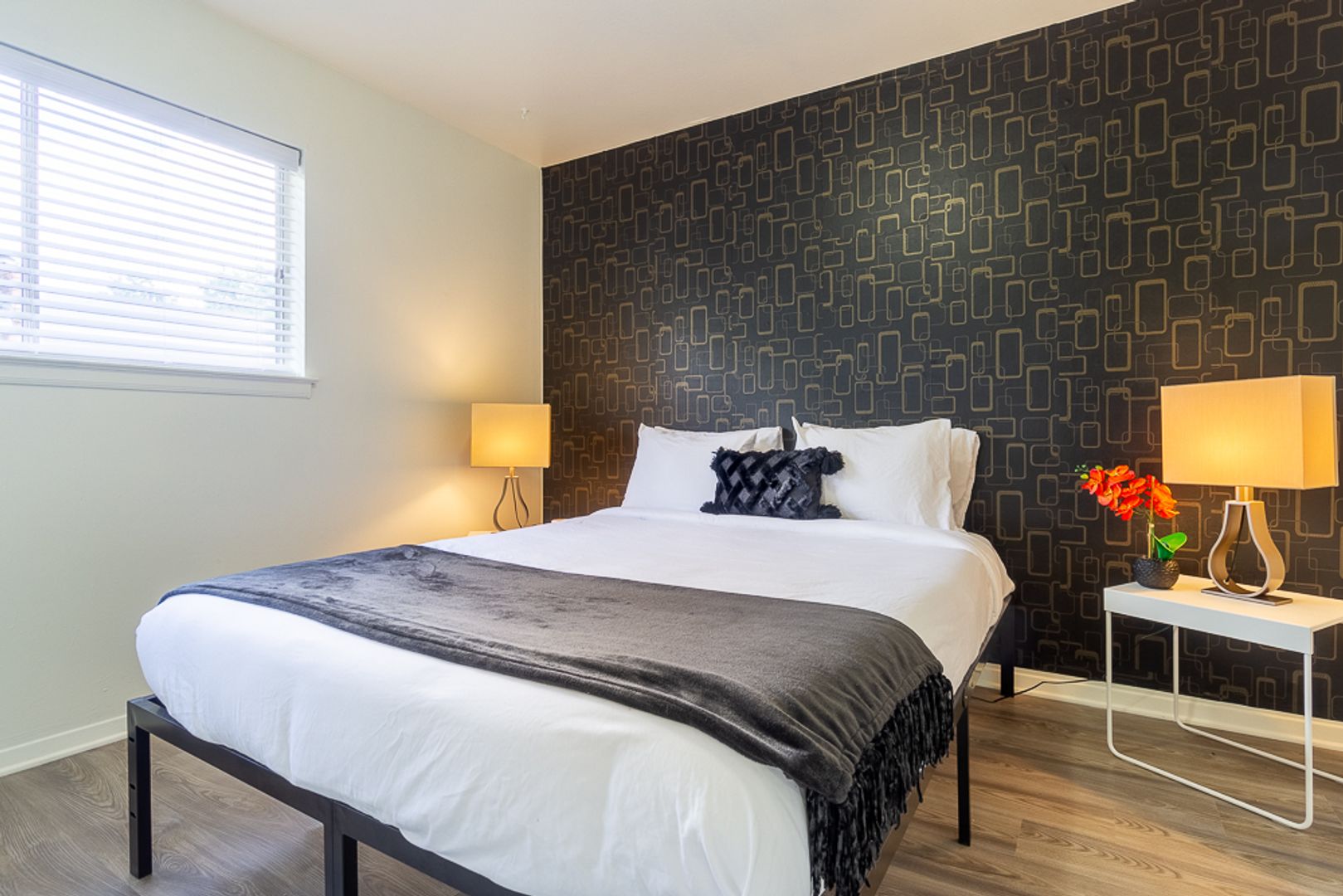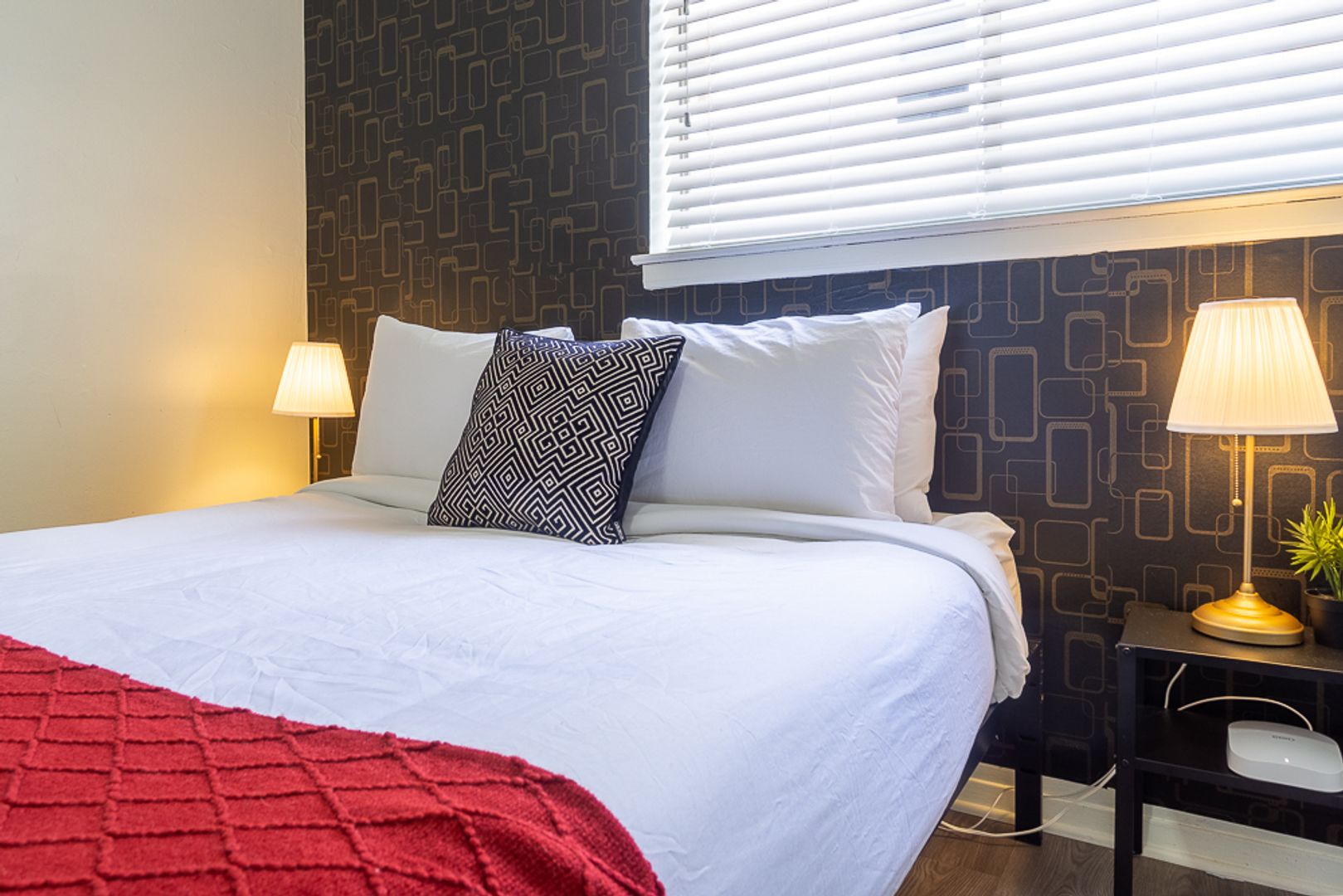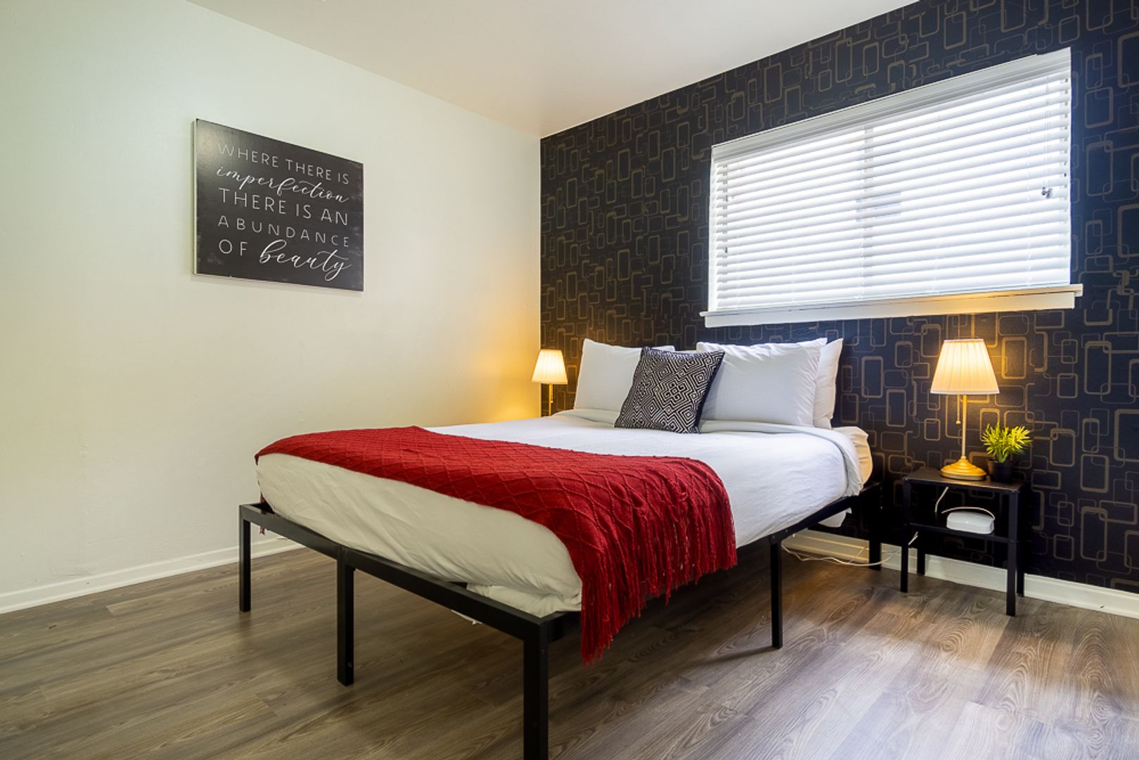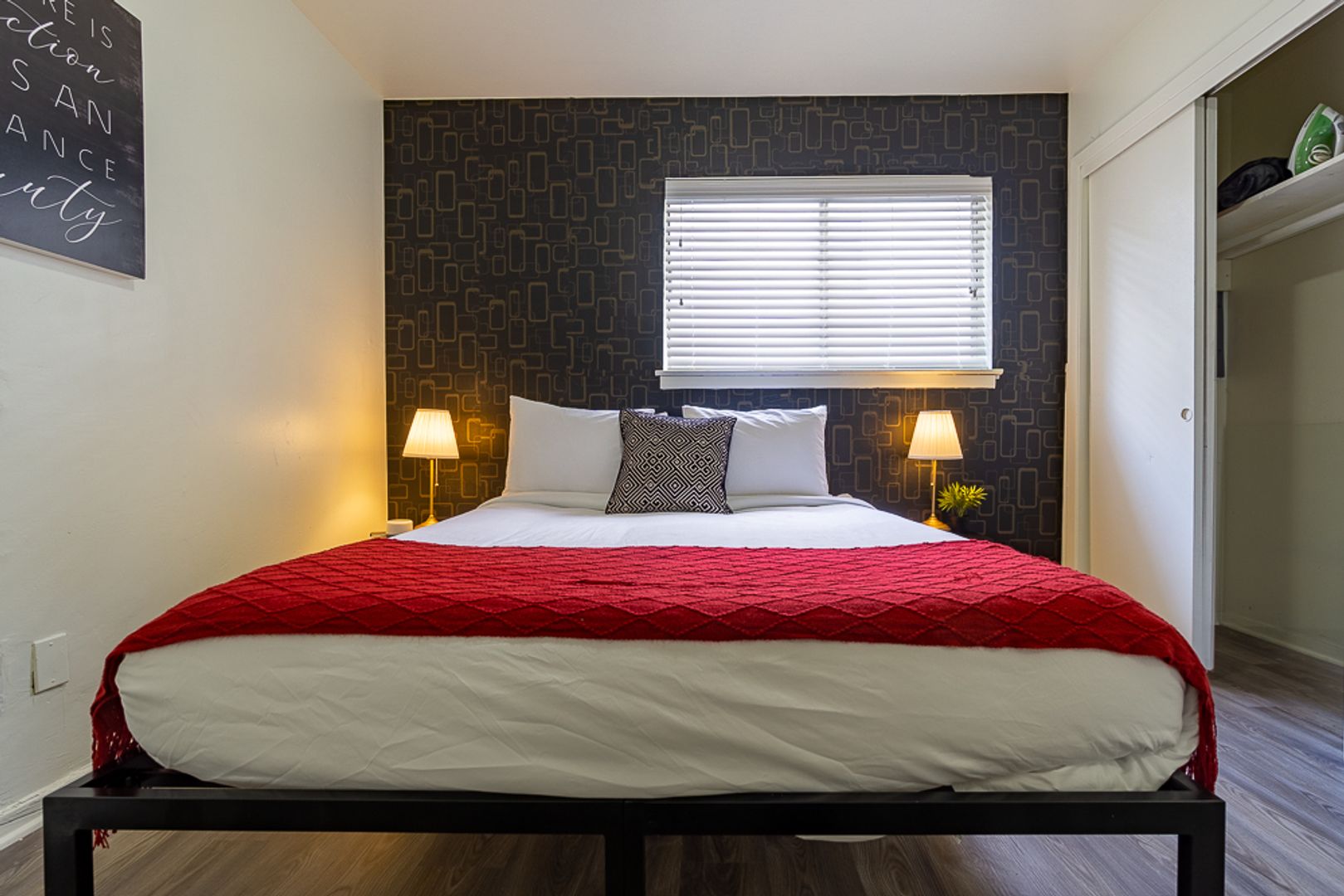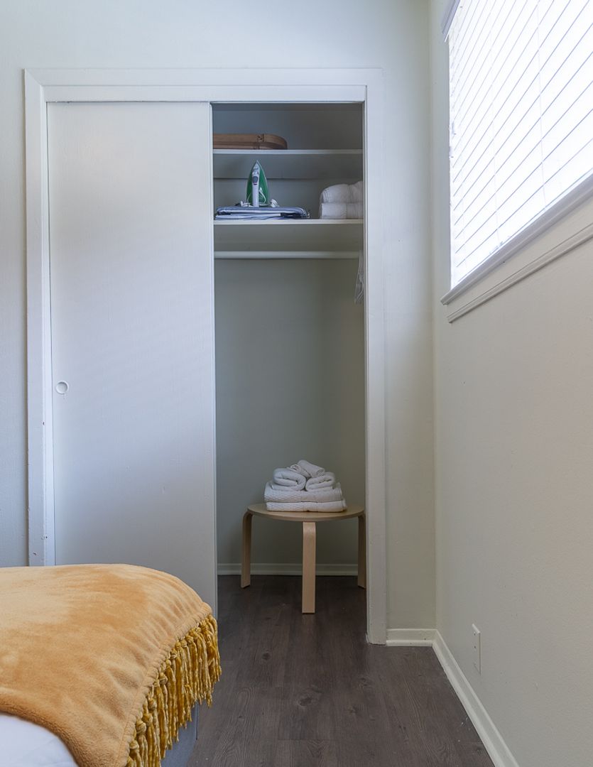 Both bedrooms feature updated lighting and spacious closets