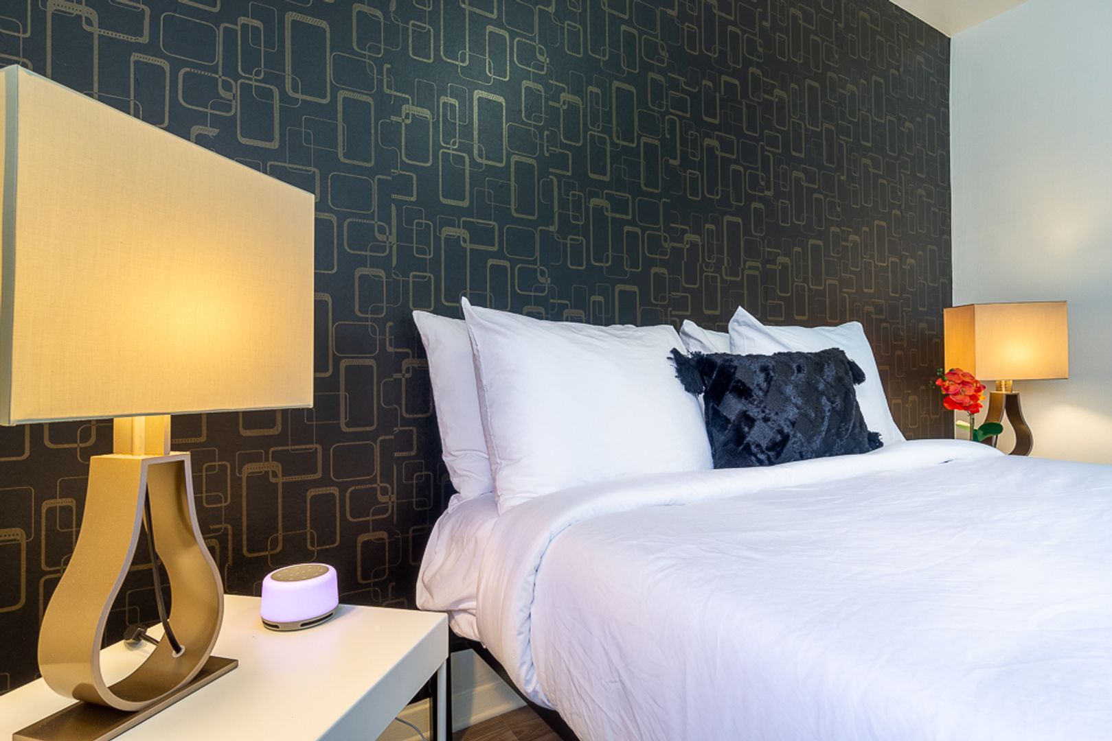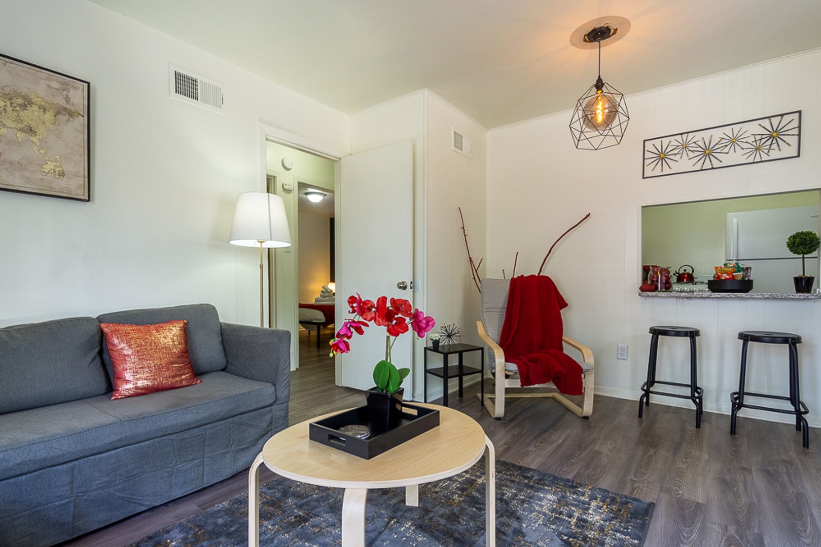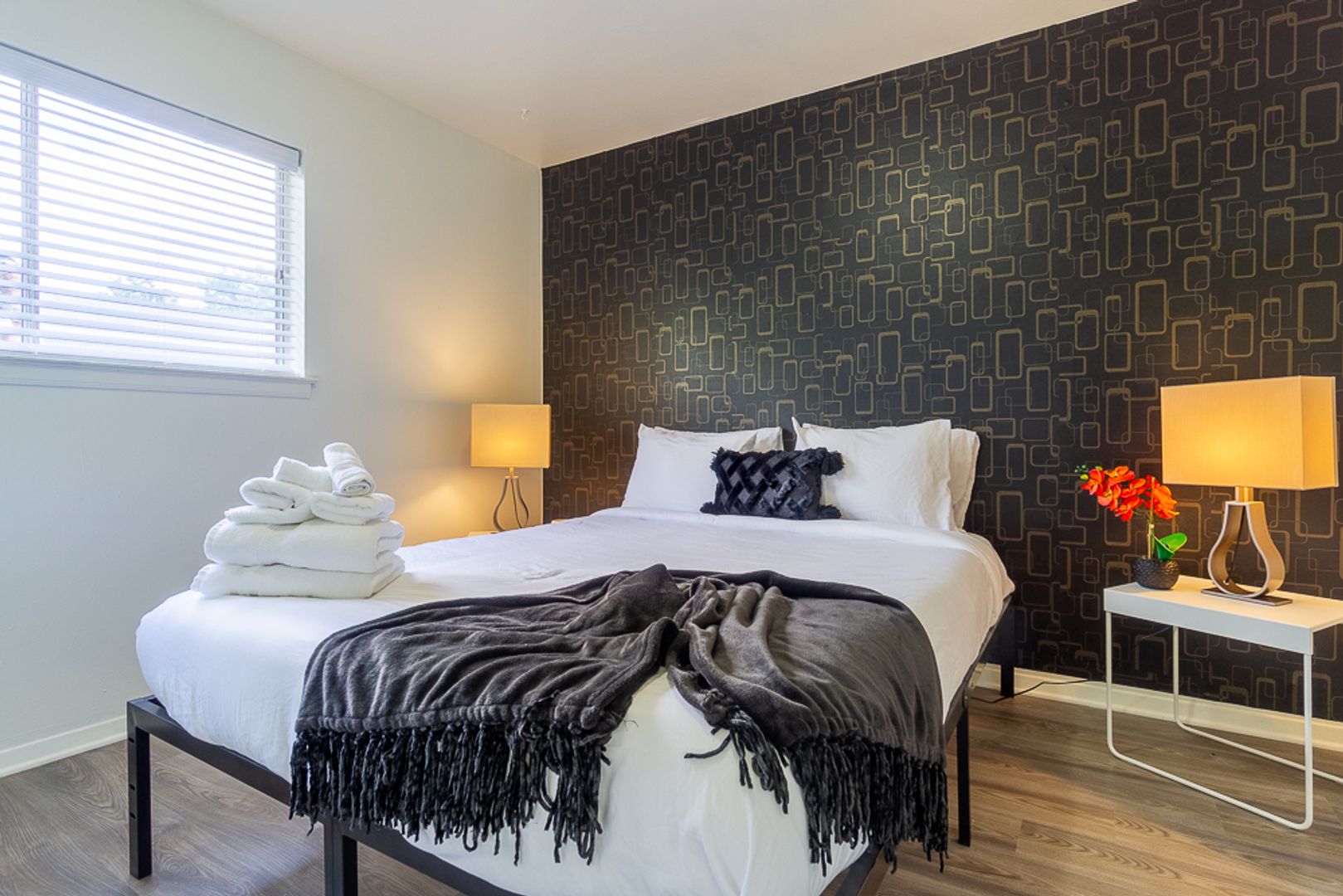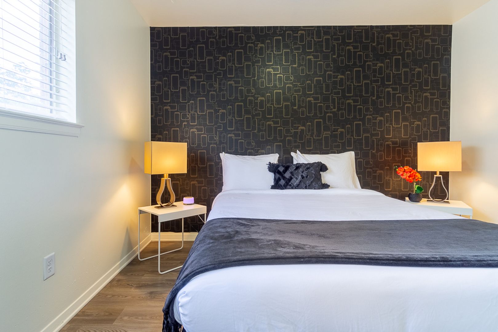 Both bedrooms feature updated lighting and spacious closets