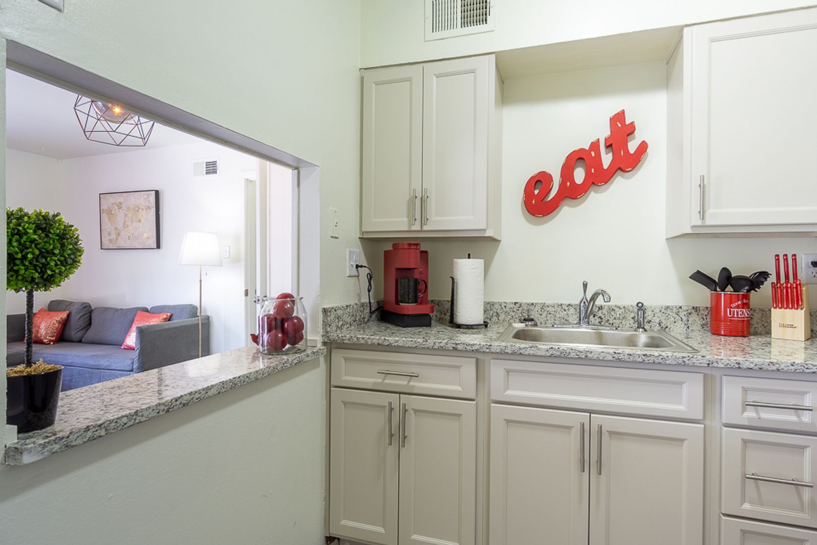 Abundance of beautiful white cabinets and stone countertops