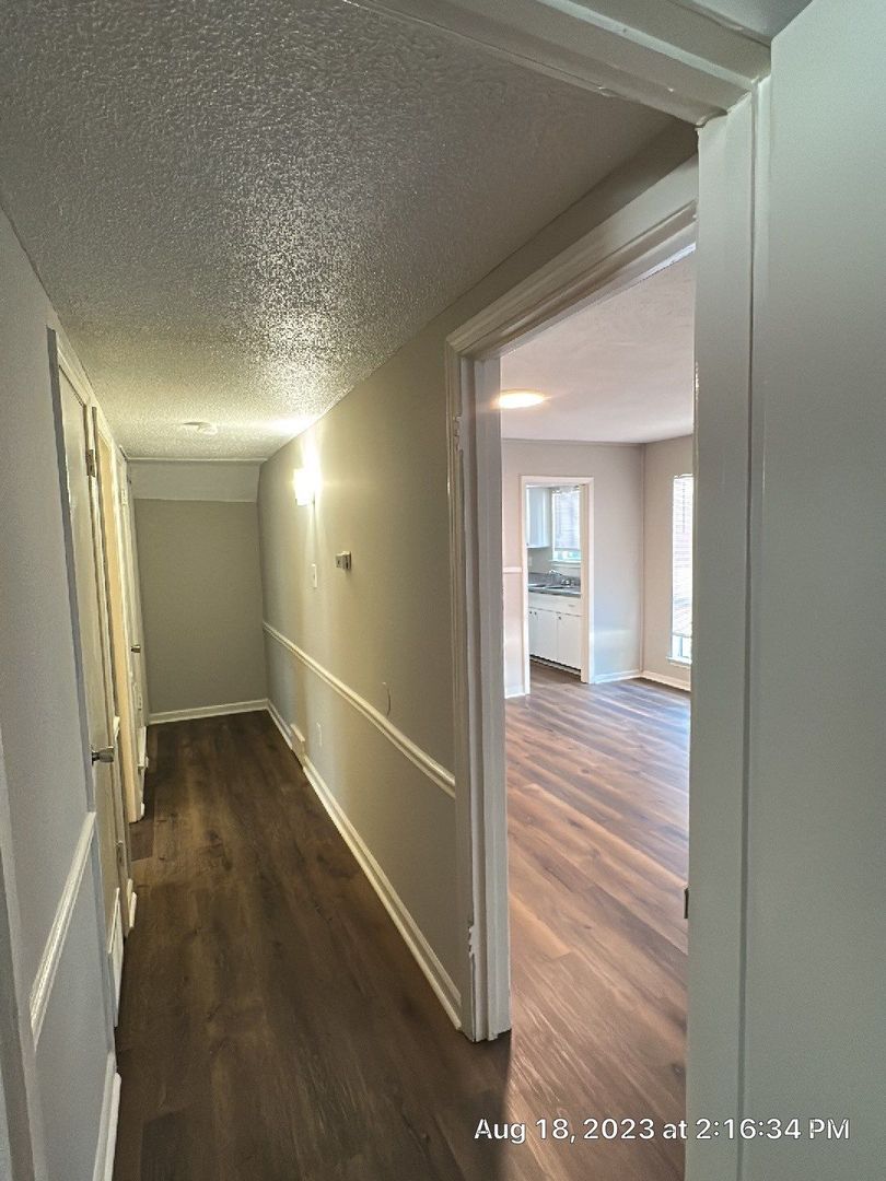 This very spacious apartment has a very open style living/dining room with a picture window for an abundance of natural lighting. The apartment has a galley style kitchen with full size appliances, an abundance of cabinet space for storage, all new flooring throughout, central heat/central air, new lighting, new locks and handles, new window treatments, new ceiling fans, new paint, large closets and so much more.....